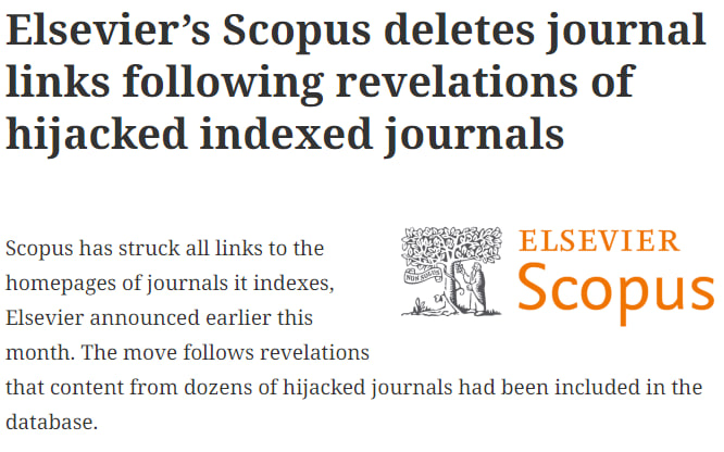 In a recent development, Scopus, operated by Elsevier, has taken a significant step by removing all homepage links to indexed journals following the revelation of compromised content from hijacked journals within its database. This move comes in response to findings that content from numerous hijacked journals had been included in the Scopus database, shedding light on a concerning trend.