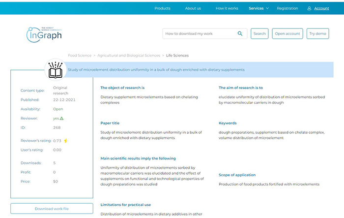 Distribution of the dietary supplement based on the chelate complex in the food system volume and its influence on functional and technological properties of the food systems under study was elucidated. Nuclear magnetic resonance and electron paramagnetic resonance methods, low-temperature calorimetric method and rheological study methods were used.
