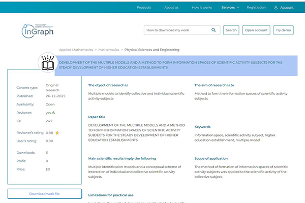 Creating the information spaces of scientific activity subjects underlies resolving those issues that would stimulate investment in research and innovation, strengthen cooperation between universities, improve the efficiency and productivity of the scientific enterprise. It has been confirmed experimentally that the potential of a collective subject of scientific activity, including individual subjects, the rate of change of identifiers of whom is positive, would have a non-negative potential. A rate of change in the normalized indicators of identifiers of individual and collective scientific activity subjects has been calculated for the period from January 2019 to December 2020 for three higher education establishments.